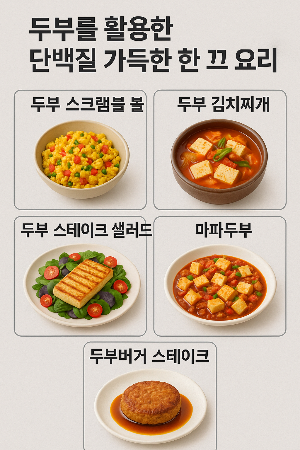 그래서 오늘은 두부를 메인으로 한 든든하고 맛있는 한 끼 요리 5가지를 소개합니다. 각 요리마다 약 20~25g의 고품질 단백질을 섭취할 수 있어, 건강과 맛, 그리고 포만감까지 동시에 챙길 수 있을 거예요!